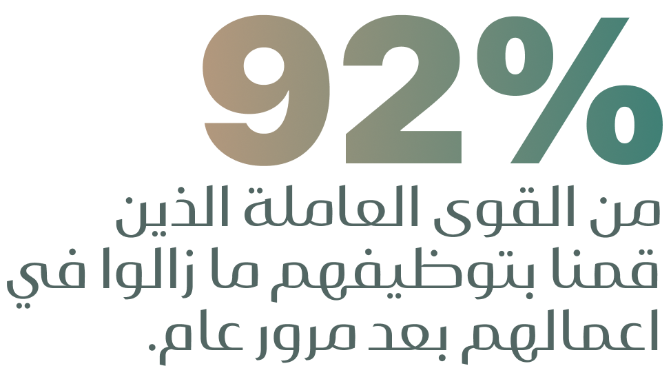 حلول القوى العاملة للشركات في مختلف القطاعات. يساعد فريقنا المدرب والمؤهل الشركات على تلبية احتياجاتها من الموظفين بسرعة وكفاءة، مما يضمن الإنتاجية والجودة والامتثال للوائح المحلية.